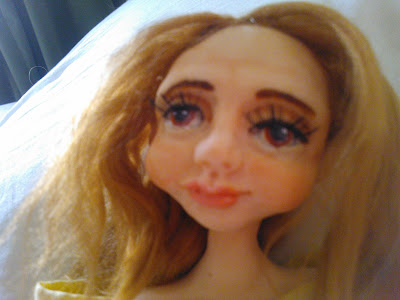I've spent some time today repainting my little fae girl. A few people have said she looks like me when I was a kid so I decided to give her brown eyes.