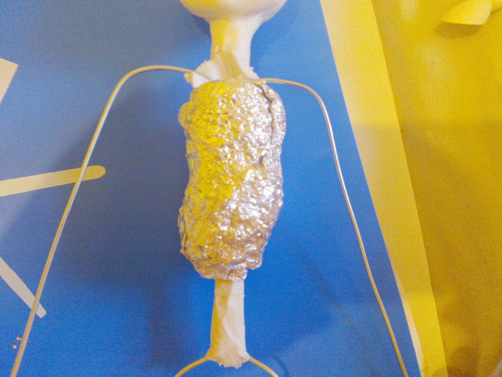Use more foil to pad out the body. Shape your torso using the foil, chest pelvis etc. Cover with tape when finished.